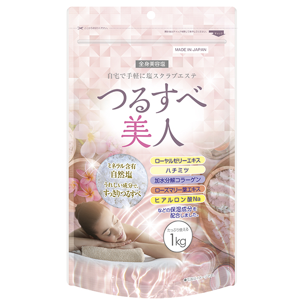 「ミネラル含有自然塩」プラスうれしい成分を配合した全身美容塩です。マッサージすることでお肌のハリとなめらかさを整えます。